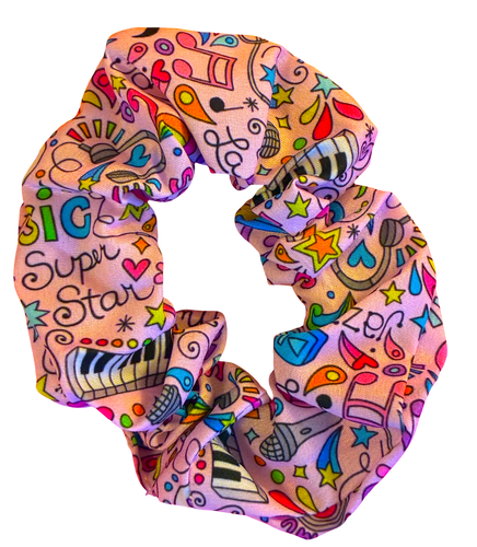 (Wholesale) I Love Music Hair Scrunchie/ 6 pc Pre-Pack