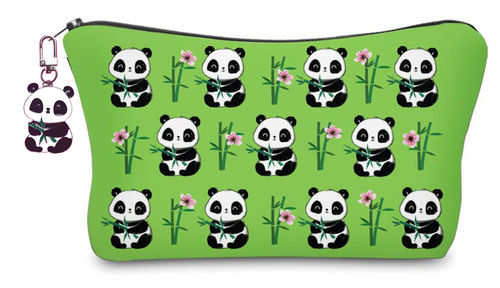 (Wholesale) Panda Party Zippered Pouch With Bag Charm / 6 pc Pre-Pack