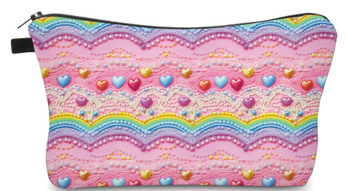 (Wholesale) Happy Hearts Zippered Pouch With Bag Charm / 6 pc Pre-Pack